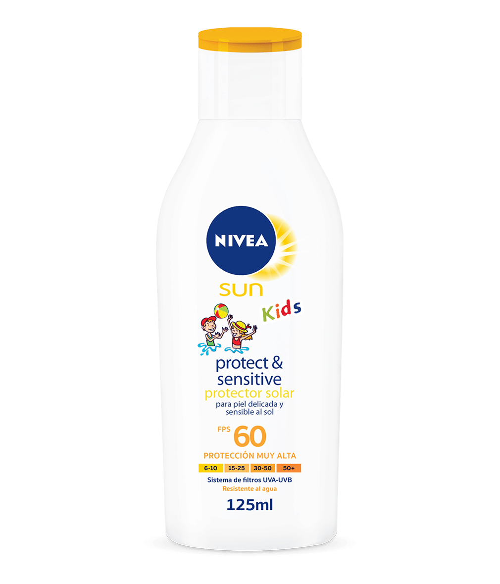 La protección solar 5en1 para la piel sensible de bebés y niños. Extra resistente al agua, protección inmediata frente a los rayos UVA/UVB. NIVEA Sun Bebés y Niños Sensitive Protect Loción.